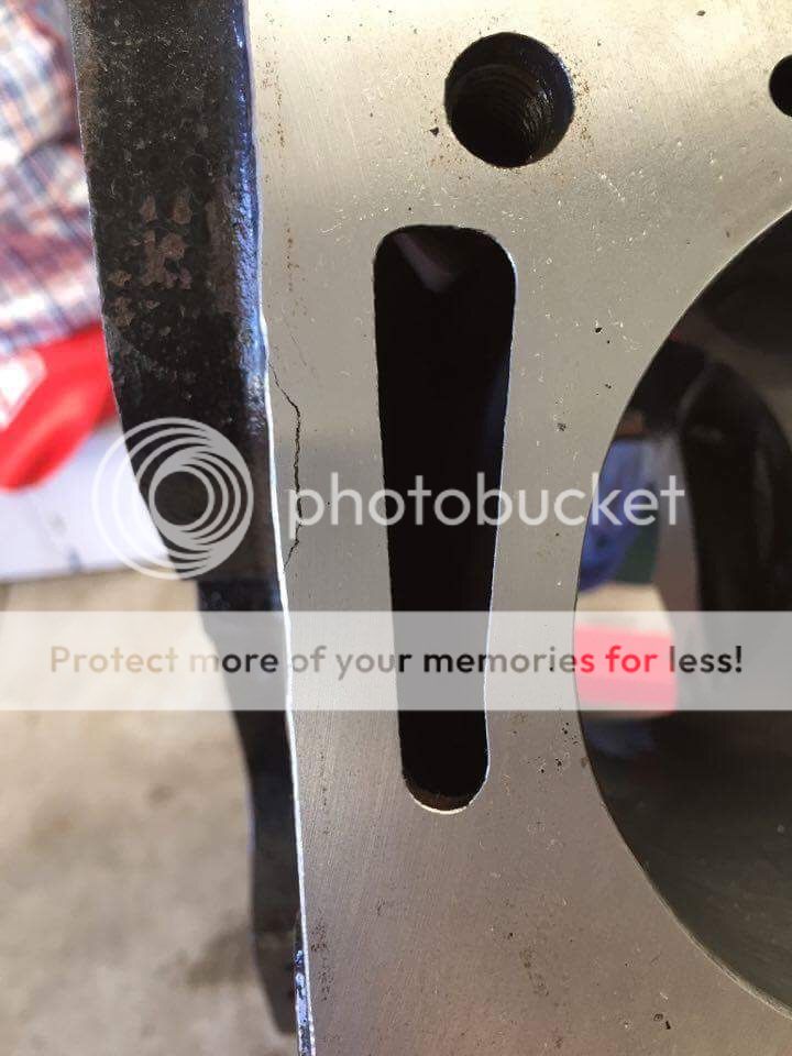 Bummer Todd. The water jacket needs to at least be pressure tested. And maybe your machinist already checked it out and didn't bother to call you? Welding at this point means another dusting of the deck and torque plate hone in #5. Hopefully the pressure test proves the crack doesn't leak so you can build it as is.