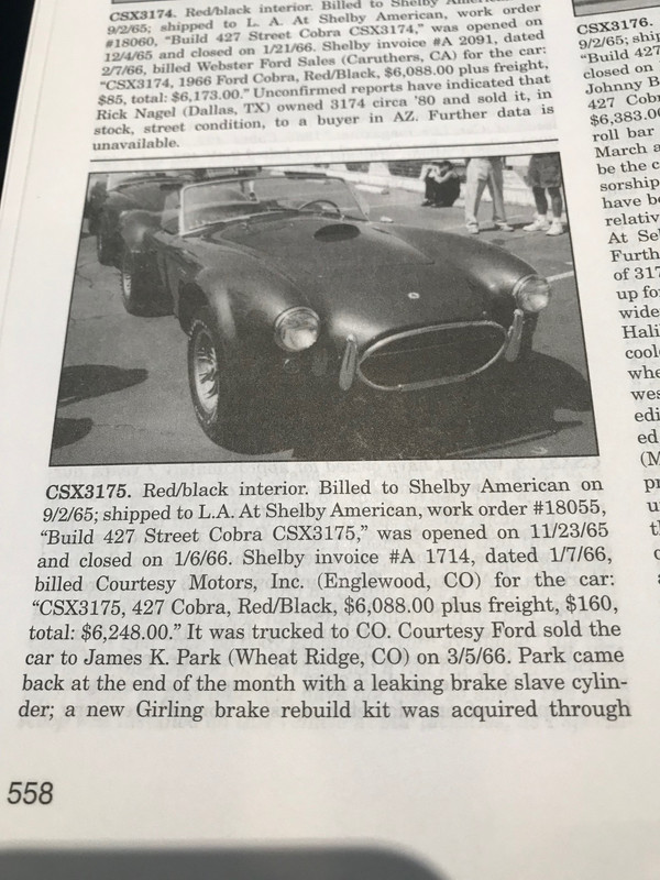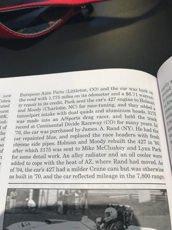We've been trying to figure out the story of where the car went but had been pretty unsuccessful. About a month back we were talking with a friend and he told us there was a whole Cobra registry and the guy in town should have a pretty good idea of where it's at (would have been nice to know!). I went over to the Shelby Collection, talked with the guy for a couple minutes, and he pulled out the registry book. Took a bit of looking around, but we found it!