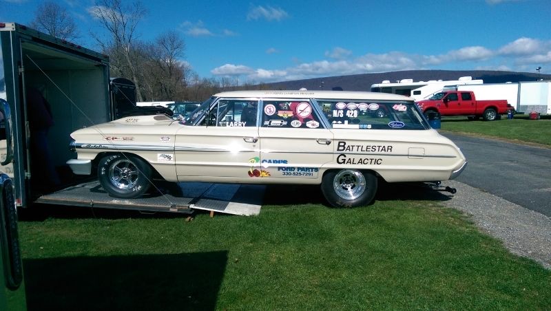 The SUPER nice ramp truck used to haul the Fuelie Fairlane below it. It was small block powered, but this truck was beautiful inside and out.