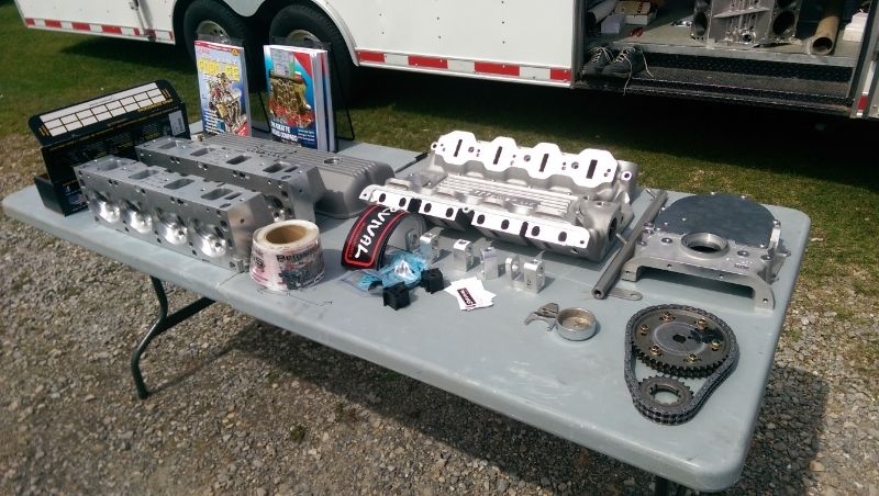 Barry's table showing a set of his CNC heads, a set of his MR stands, one of Jays unported adapters and his removeable timing cover along with Barry's hopefully soon to be available prototype adjustable timing set. I think it's awesome that these two are working together on this and coming up with a useable design for us FE'ers. I have one of Jays adapters and covers, so I'll definitely be in line for the adjustable set. Finally got a chance to buy Barrys and Jays books also...without paying shipping. Yeah, I'm cheap