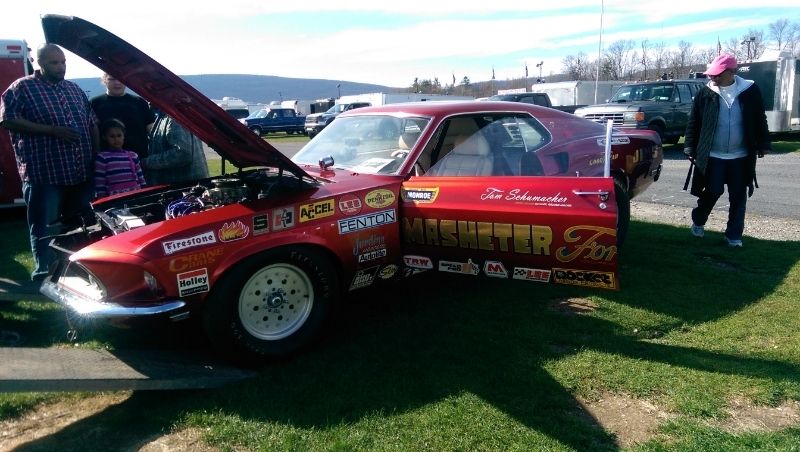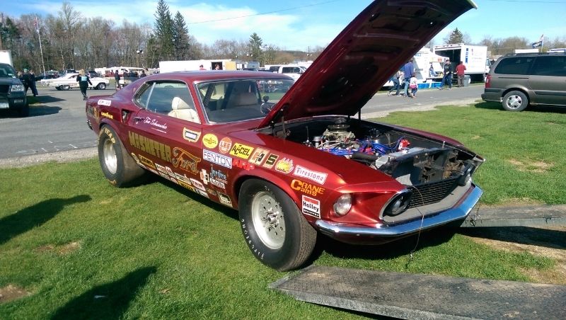 This is Pat Schumachers old SS Mustang that he ran in 1970-71. Although It also ran in Stock for a time I believe. I remember this car from Ohio, where he was based, when I was very young. The current owner has had it since 1971 after buying it off Tom. It held the National Record at one point. The car is so original it's amazing. Same candy metallic paint, which had a really neat cracking/crazing going on under the paint that looked like it was supposed to be that way! Same graphics and stickers, with just a few stickers added over the years, but still had the painters and stripers signatures on the quarter pillars. Original interior, all the mods that were done to the car in its original form, including a T-bolt style rear suspension set-up that tied into the frame inside the car (which I DIDN'T get a picture of...stupid!