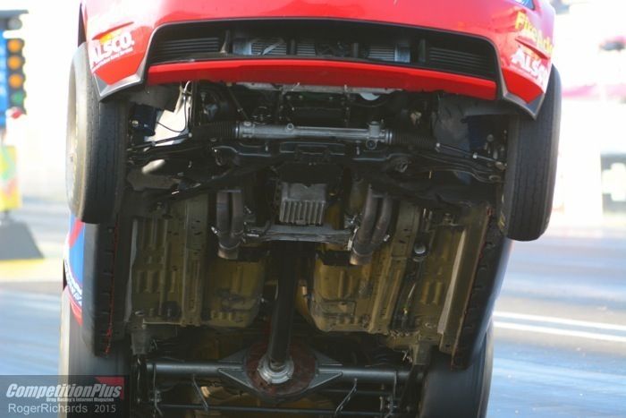Now, just my opinion from watching your video, I think when that driver sensed his car wasn't going straight he eased off the throttle and the car came down hard. Normally, on a good run, the driver would of course stay on the throttle and the car would come down easy. I think the sparks you're seeing are probably from the various parts of the undercarriage scrapping the pavement and as Howie said, these new cars are tanks. I'm guessing the owner looked the car over after the run and didn't find anything seriously amiss, or fixed it if they did and were able to run again. Then they either made some tuning / driving changes on the next runs since you'll notice he kept the wheels closer to the ground after that. I'll say too that I don't think the driver totally panicked when the car got on the rear bumper cover or you would have seen the car come down much harder.