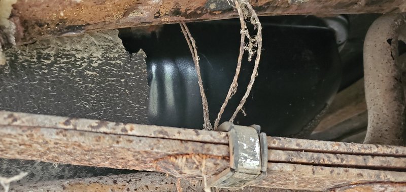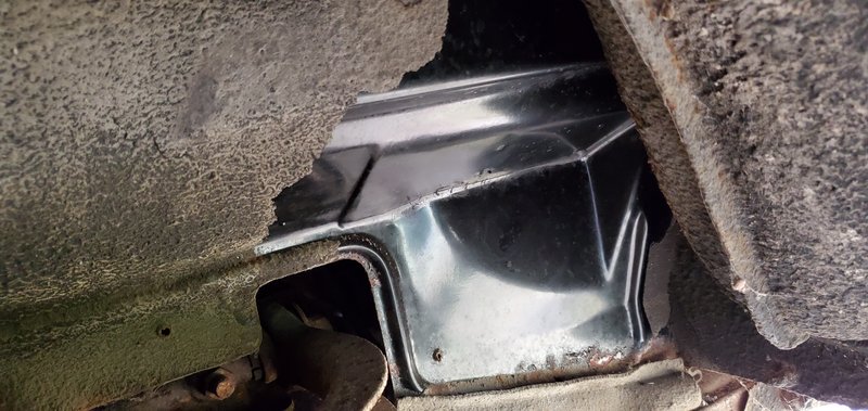 The floorpans look the same...everywhere. I just couldn't get low enough to get a shot of them. The frame also has undercoating, so while it's surface rusted in a couple of areas at the rear, where the undercoating had recently fell off, the rest of it looks to be in amazing shape. Yes, I think I got the car out just in time!