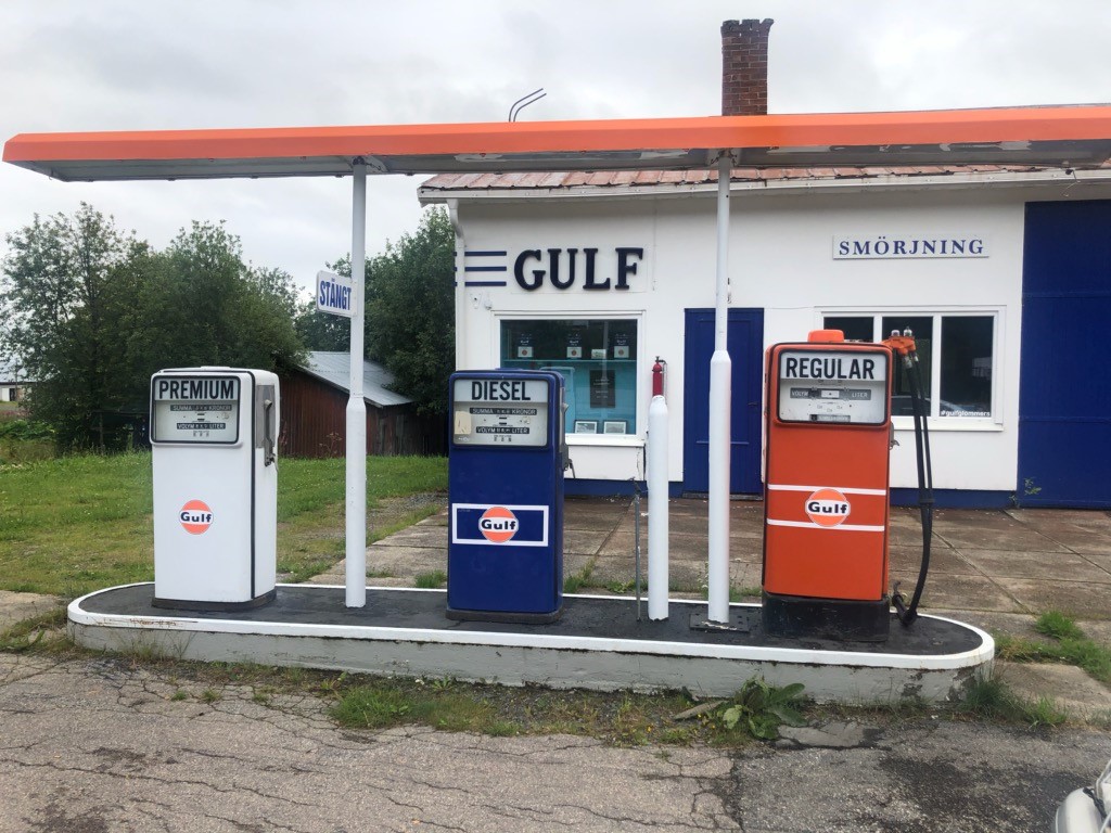 Somebody have restored an old Gulf gasstation in an dying village. There was a VW type3,Opel Kapitän, and a VW type3