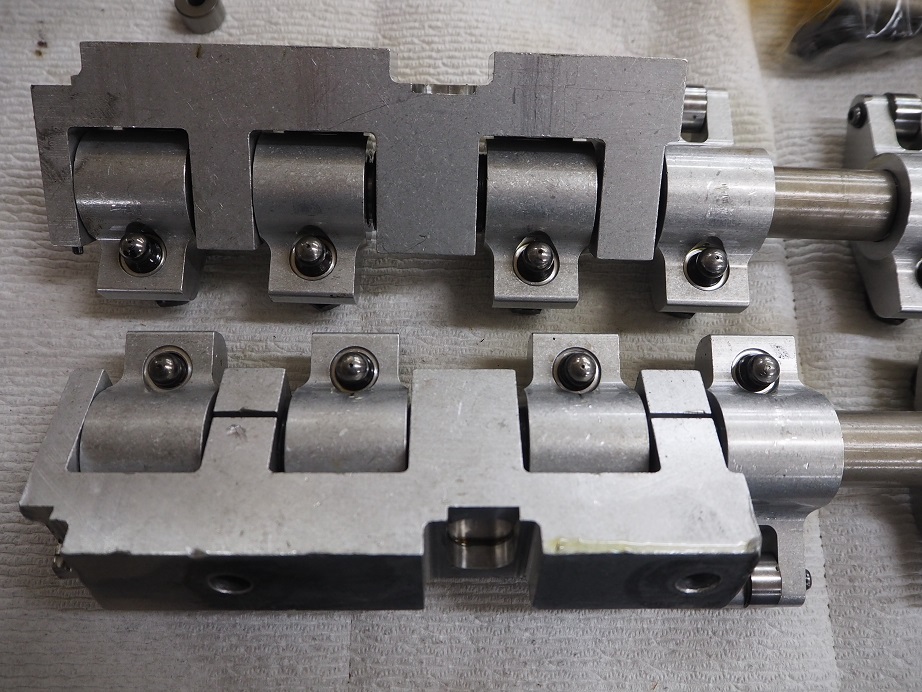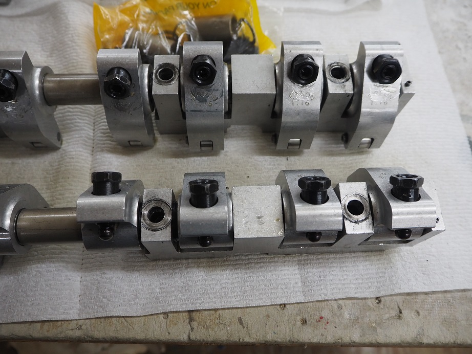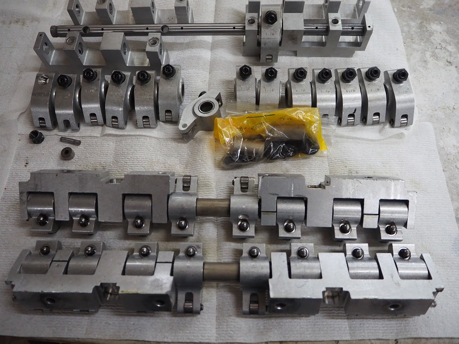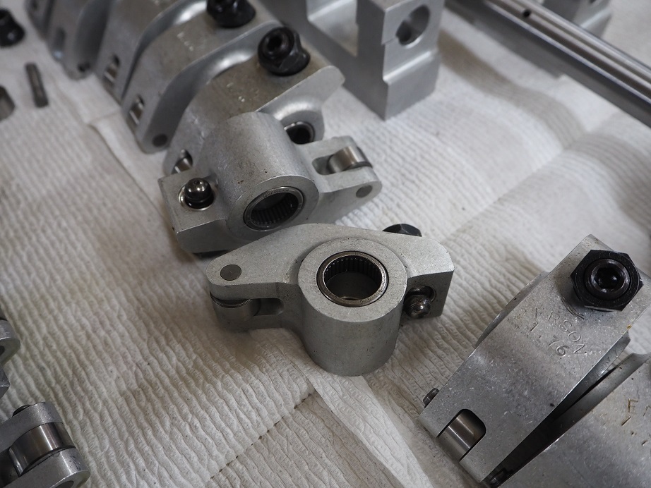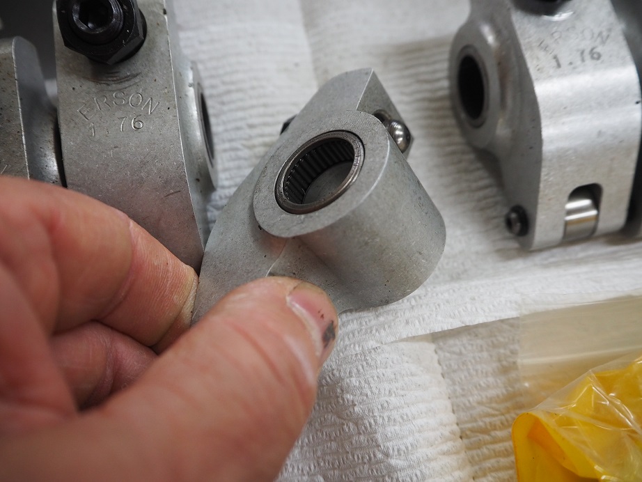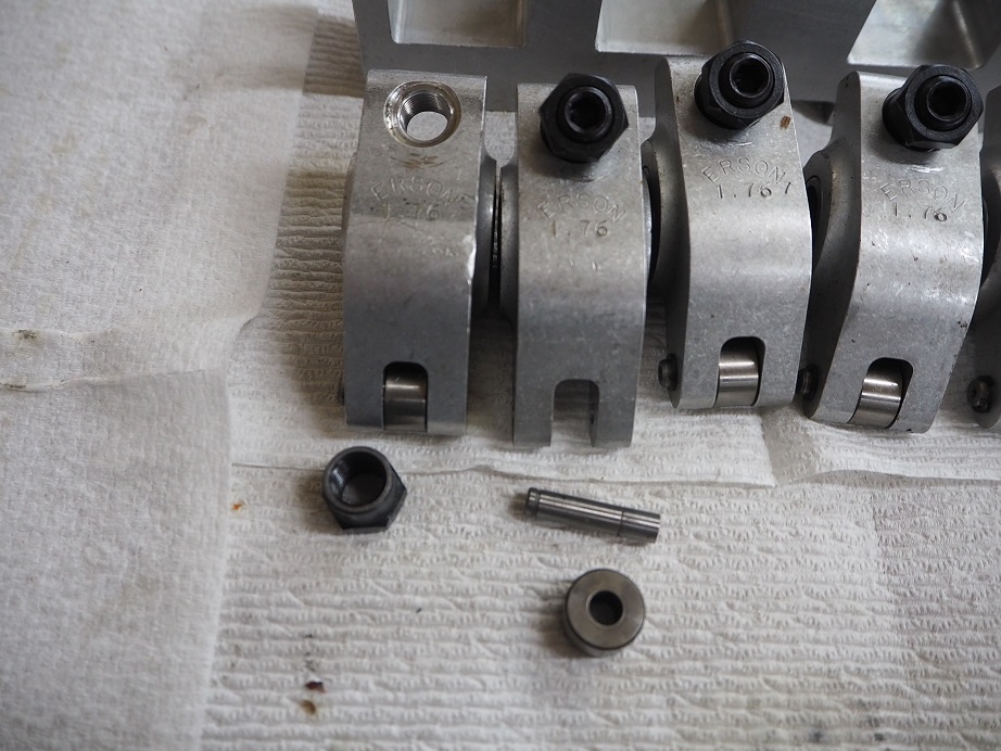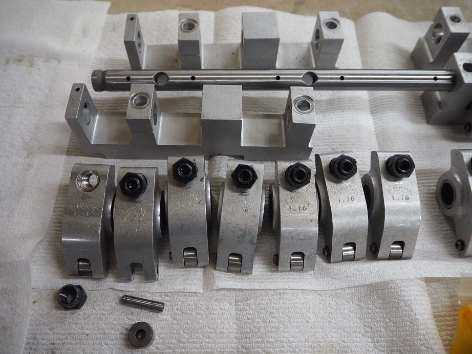 For anyone not familiar with these rockers, there are a couple things to know. First of all, due to their reduced diameter the shafts are susceptible to breakage if installed incorrectly. You have to be sure to tighten the nuts on the studs that hold the rocker assembly to the heads very slowly and evenly; I go 1/4 turn at a time on all of them until they are tight. The shaft that is missing was broken when I went too fast on the installation. The second thing to know is that needle bearings leak more oil than bushings, so you can't restrict the oil to these rockers as much as you can with a bushed rocker setup or you will starve the rockers of oil at the front of the engine. I used .090" restrictors on my Drag Week engine, which worked fine. If you pay attention to these details, this is an excellent rocker system.