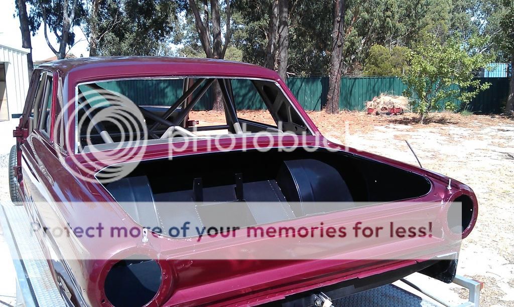 I may have mentioned in the past that I have been building a drag race car for the last few years. It's still not finished, but is getting close. I thought I would post some pictures here detailing the build so far. The car is 1964 Fairlane 2 door sedan that I want to look externally like a Thunderbolt. I don't have any restrictions regarding suspension in the class I will be racing in, so it has a 4 link rear with 3/4 chassis and modified front suspension using coil over shocks. This also allowed the inner fenders and shock towers to be removed.