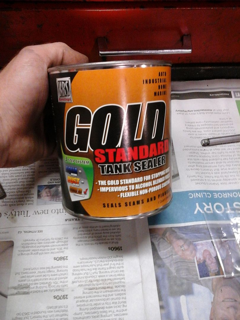 Next, I washed the tank out with soap and water and let it dry out in the sun while I ran into town for paint on the exterior. When I got back it was nice and dry and I started mixing this to seal the inside of the tank. I used this on the old one, works very well.
