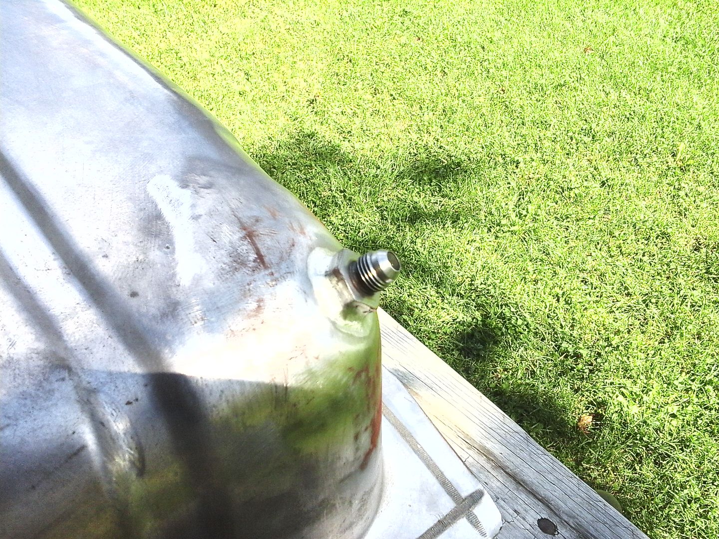 When I tried to remove the drain plug it came with, it wouldn't budge. So, I resorted to heat, but all that did was loosen the soldered joint at the drain fitting and drop into the tank. >:( Has anyone else had this problem? Well, now I decided to do things my way, so I ordered a 6AN bung and had it tigged on.