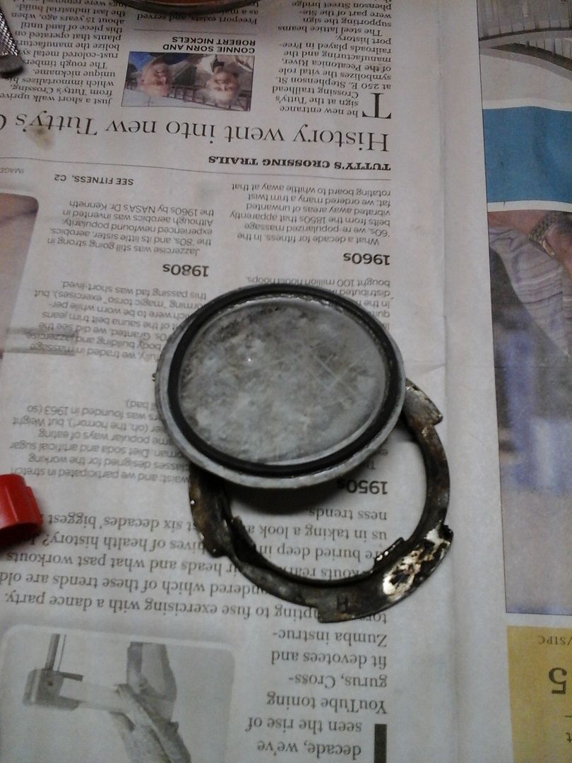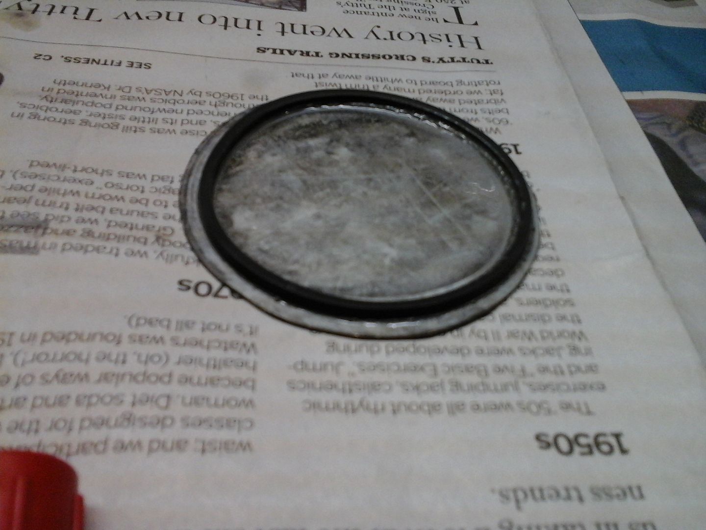 From the last time I did it, I made this little seal plate out of sheet metal and rough cut it into a circle and filed it smooth. I used an old tank seal and lock ring to complete it.