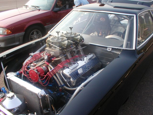 I have also seen other sheet metal intakes for SOHC engines with runner lengths that seemed to vary quite a bit. The first photo below shows a picture of the sheet metal intake on Mike Jackson's SOHC race car, and the runners appear to be in the 6" range. The second photo shows a tunnel ram intake with much longer runners: