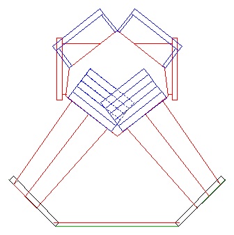 With this design and no extensions on the runners, the plenum volume is just about right (585 cubic inches), and the total runner length is about 10". The throttle bodies are mounted on the side of the manifold due to constraints in the vehicle. Adding four 1/2" extensions to the runners would make the manifold look like what is shown in the drawing below: