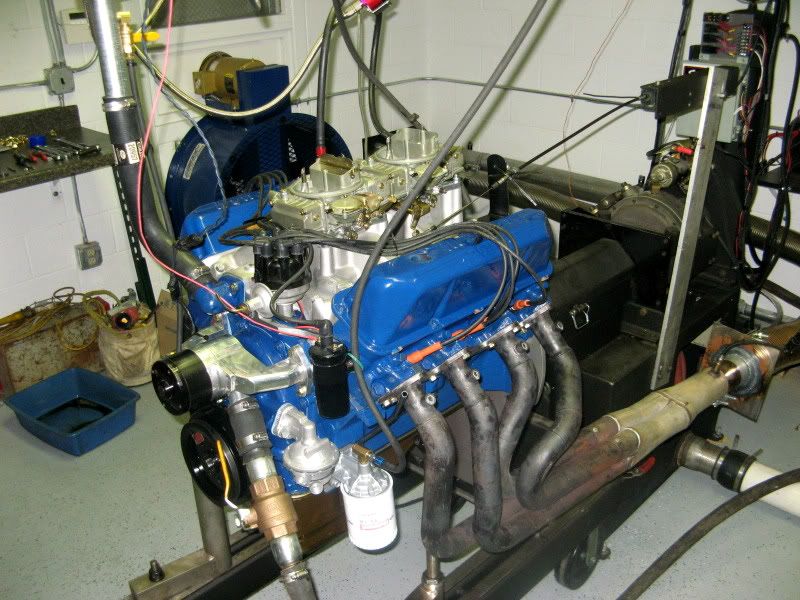 I took a trip up to Michigan last week to sit in on the dyno session of my 445 stroker built by Barry R. I had Barry reuse some of the pieces from my last 390 build which had less than 500 miles on it including a set of C6AE-R heads. The iron heads surely cost me some power as was expected but the investment in the iron heads had already been made as well as the headers and the desire to keep the original look was worth a few ponies. Horse power was consistently between 444 and 448 with a peak of 456@6000 that Barry attributed to technique more than any change made to the engine, torque numbers were in the upper 460's to a high of 476@4200.