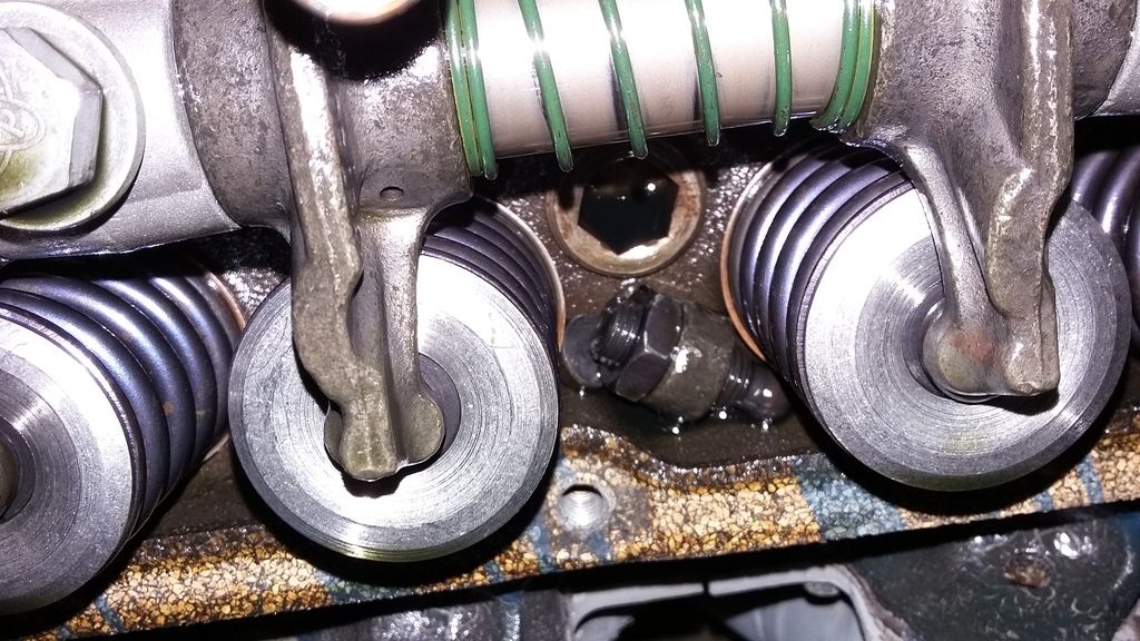 The piece of rocker with adjuster and lash cap were sitting snug as a bug between the valvsprings.