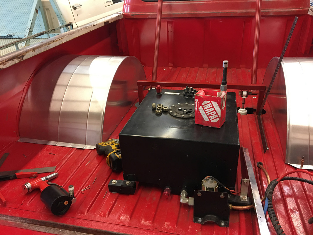 To get all that tire to fit, I cut out the old factory wheel tubs and got an aluminum wheel tub kit. These are no fun to assemble at all. Dad and I fussed with these for a while. But in the end, we came up with a pretty sweet installation.