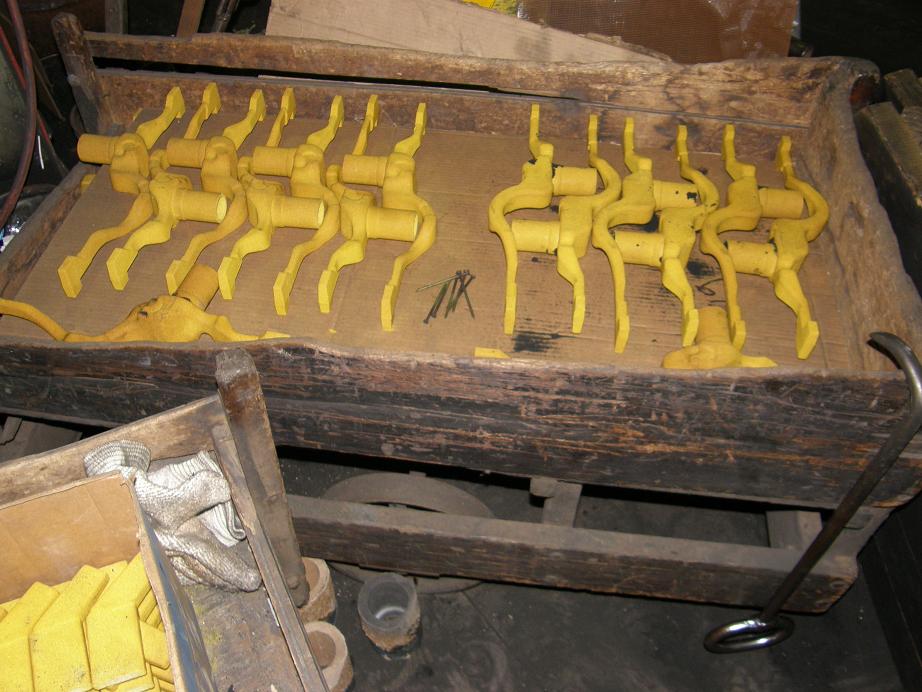 And here's a photo of a few of the castings that have been broken out of the mold, and still have the risers attached: