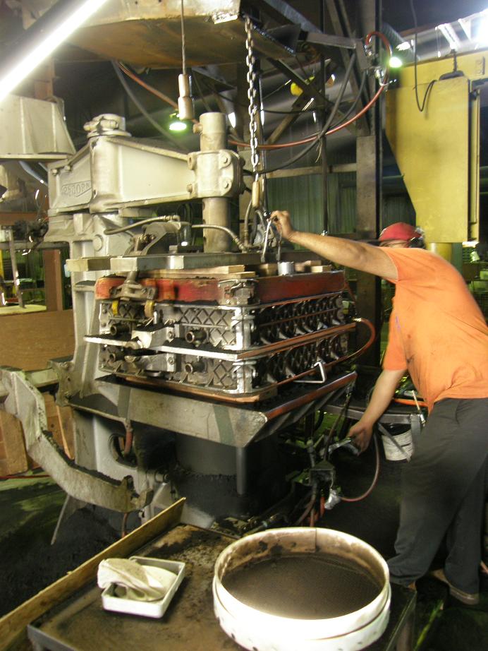 The machine in the photo below is the one they are using to make the sand molds for the intake manifold.  I think it is called a Roto-Lift machine.