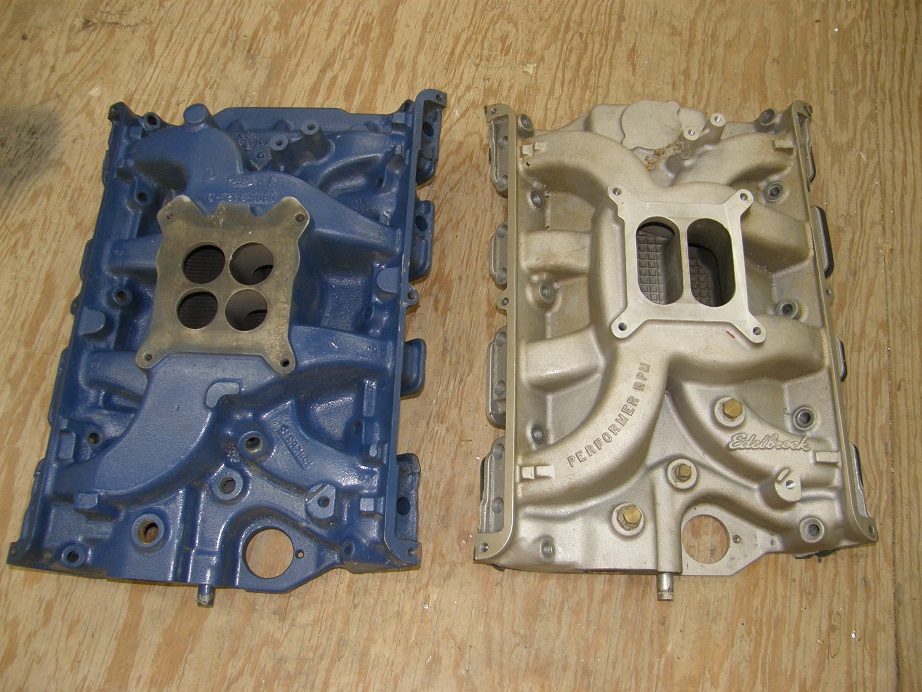 - Edelbrock Performer 4V intake (not Performer RPM), as cast; $325