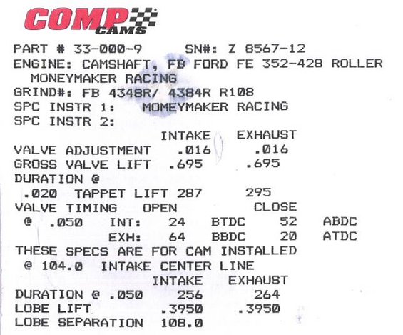 So I'm gathering parts to bulid a 427 (484) using a scat 4.25 crank, 6.700 rods and this cam.
