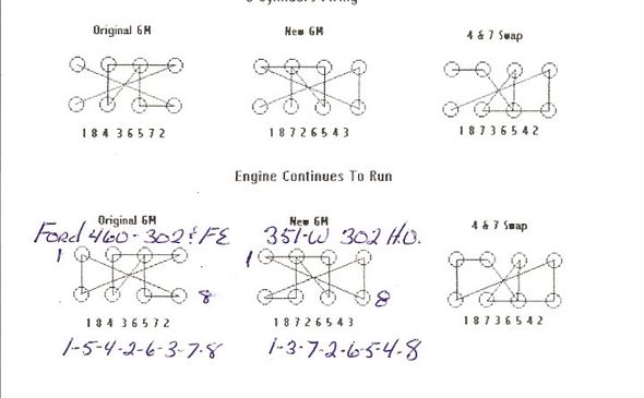 The Flat Head firing order was:  1-5-4-8-6-3-7-2.  It's the GM 7-2 swap in the picture.