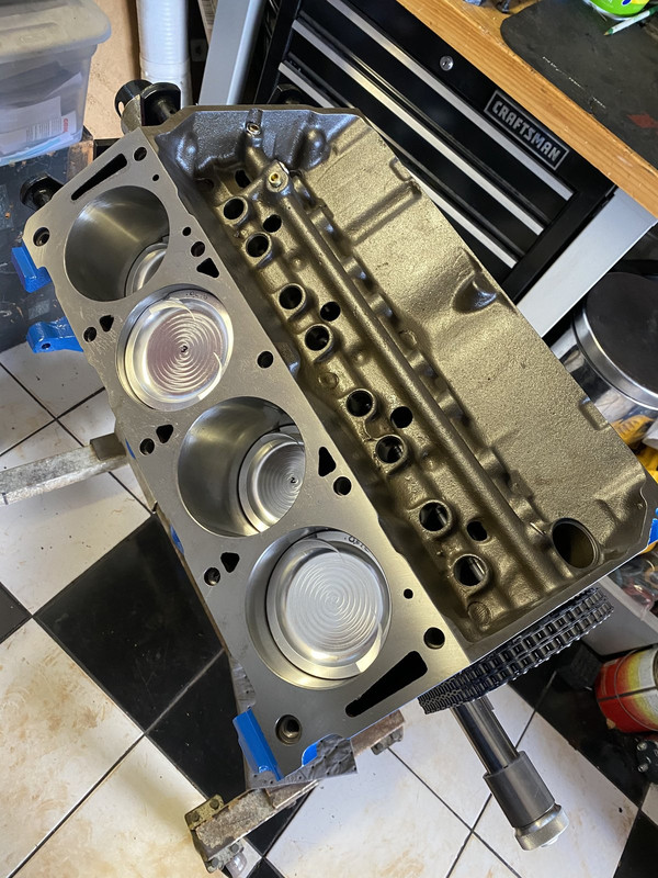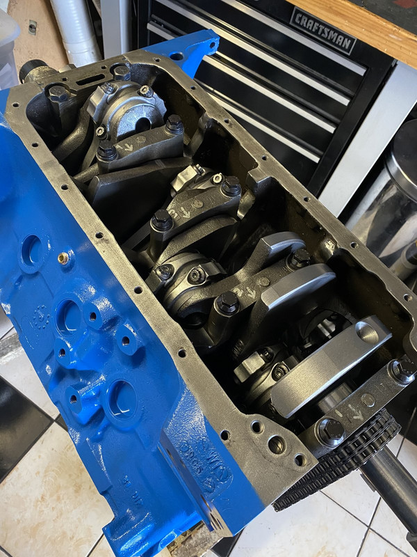 Well the bearings from Brent got here and I immediately went to work. It was easy to pull all the pistons and install the STD/HN1 mix. Gave me a chance to look over the rings again just to make sure I had no overlapped oil ringage. All was well.