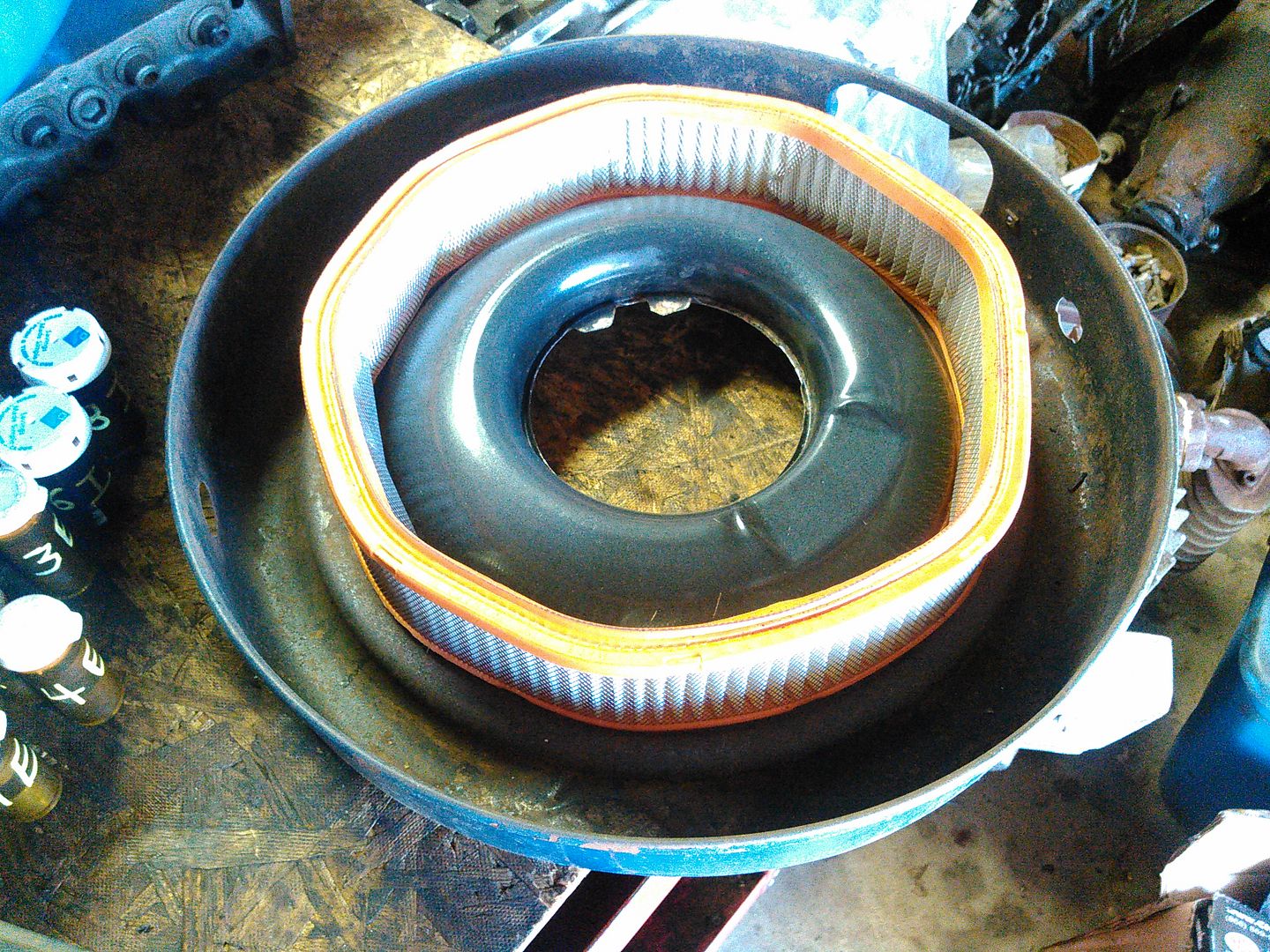 The air cleaner is from a 72 F250. I don't remember ever pulling an air cleaner element deformed unless it was plugged up or wrong for application. In the past I have ran open cleaners that would collapse fairly clean. Thought it was from the dirt roads, can't say that here. Looks like a .060 over 390 just pulls too hard when wound up or has the stock size filter element always been too small?