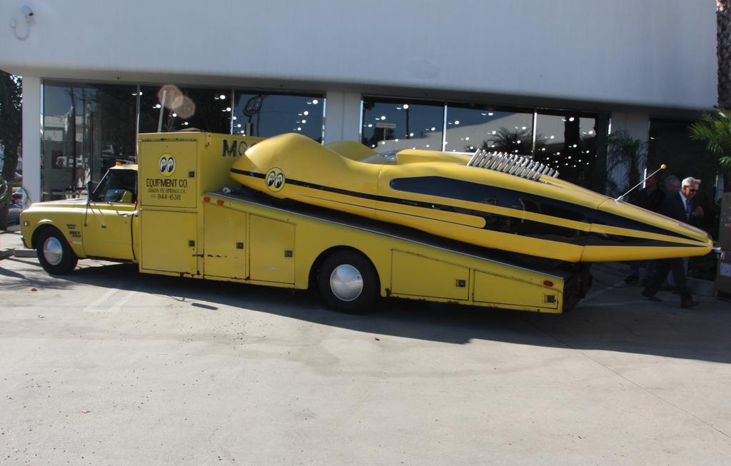 As we saying ta ta, the old unrestored Mooneyes ramptruck (non-Ford though) showed up with the Mooneyes streamliner on the back.