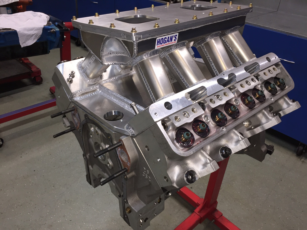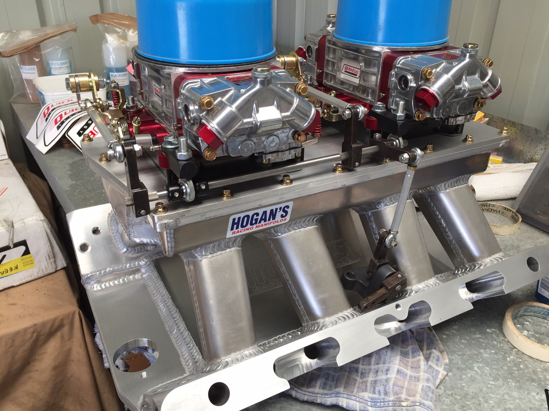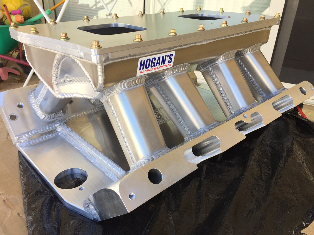 The Hogan 2x4 tunnel ram intake manifold was made specifically to match the intake ports of these heads. It doesn't include the water crossover, but does have water outlets plumbed at each corner of the manifold. This cost over $4000 new.