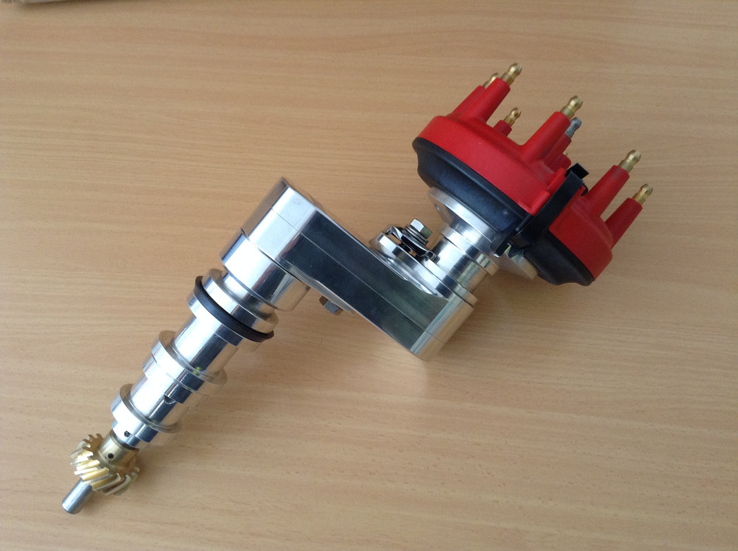 While the intake does have a relief in the plenum to clear a distributor, I also have a Swartz offset distributor. It uses an MSD cap, has a bronze drive gear and a spare belt drive to go with it.
