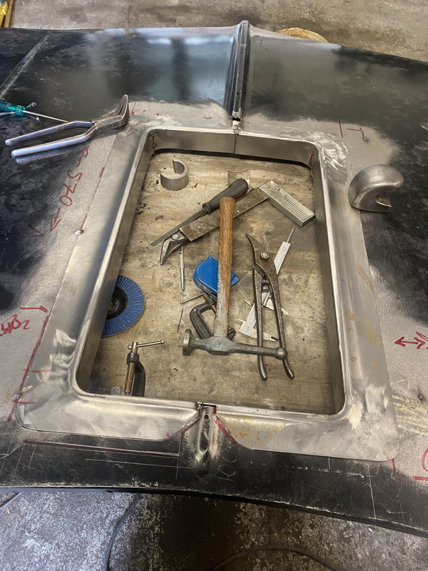 So i prommised to help him, he stoped by today so i cut away the junk that was welded to the hood and