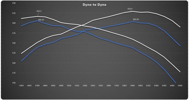 Also, as you know, it's nearly impossible to compare these builds, especially across at least three dynos but:
