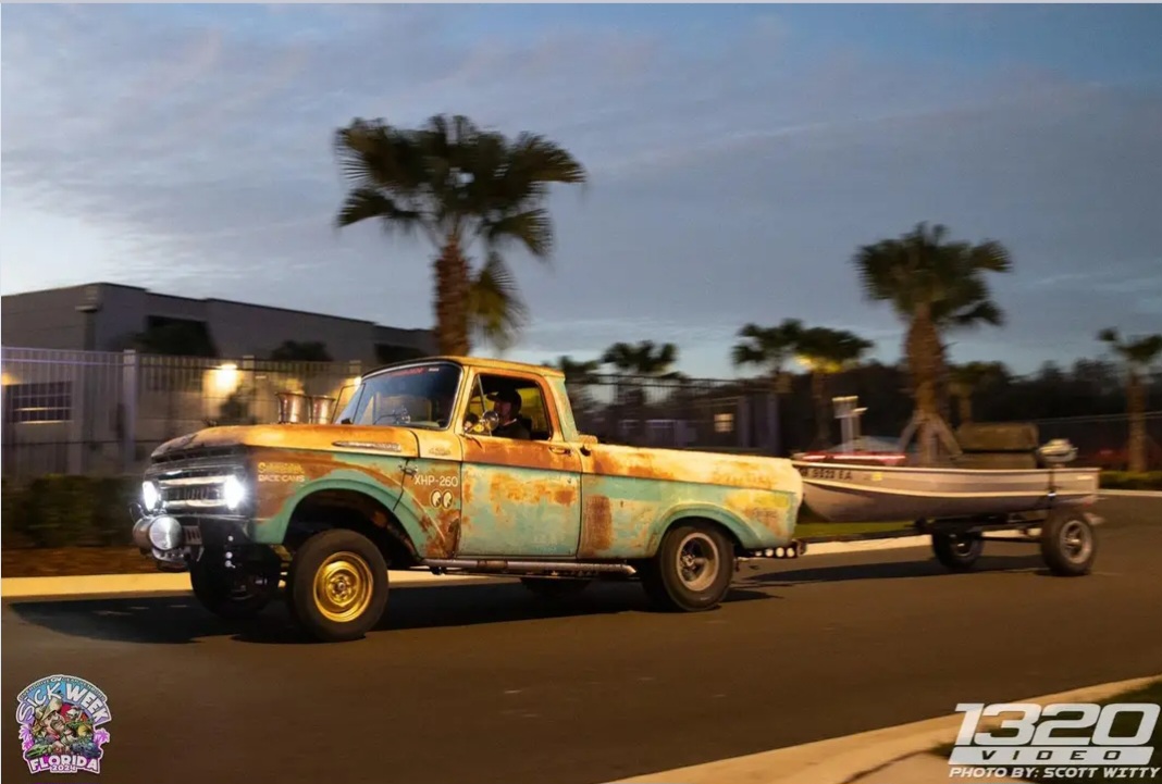 The coolest thing about the pickup was the trailer he used was a fishing boat complete with outboard motor.