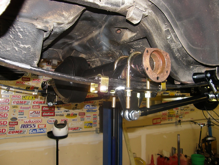 Last night I got the leaf springs installed.  Tonight, after cleaning out the axle housing, I bolted it in place with the Cal-Tracs and the U-bolts from Calvert racing.  Looked pretty good, and everything fit perfectly: