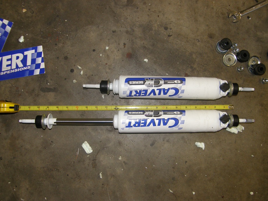 For what it's worth on my 67 mustang the Calvert rear shocks were too long. I had to exchange them for shorter 65/66 mustang rear shocks.