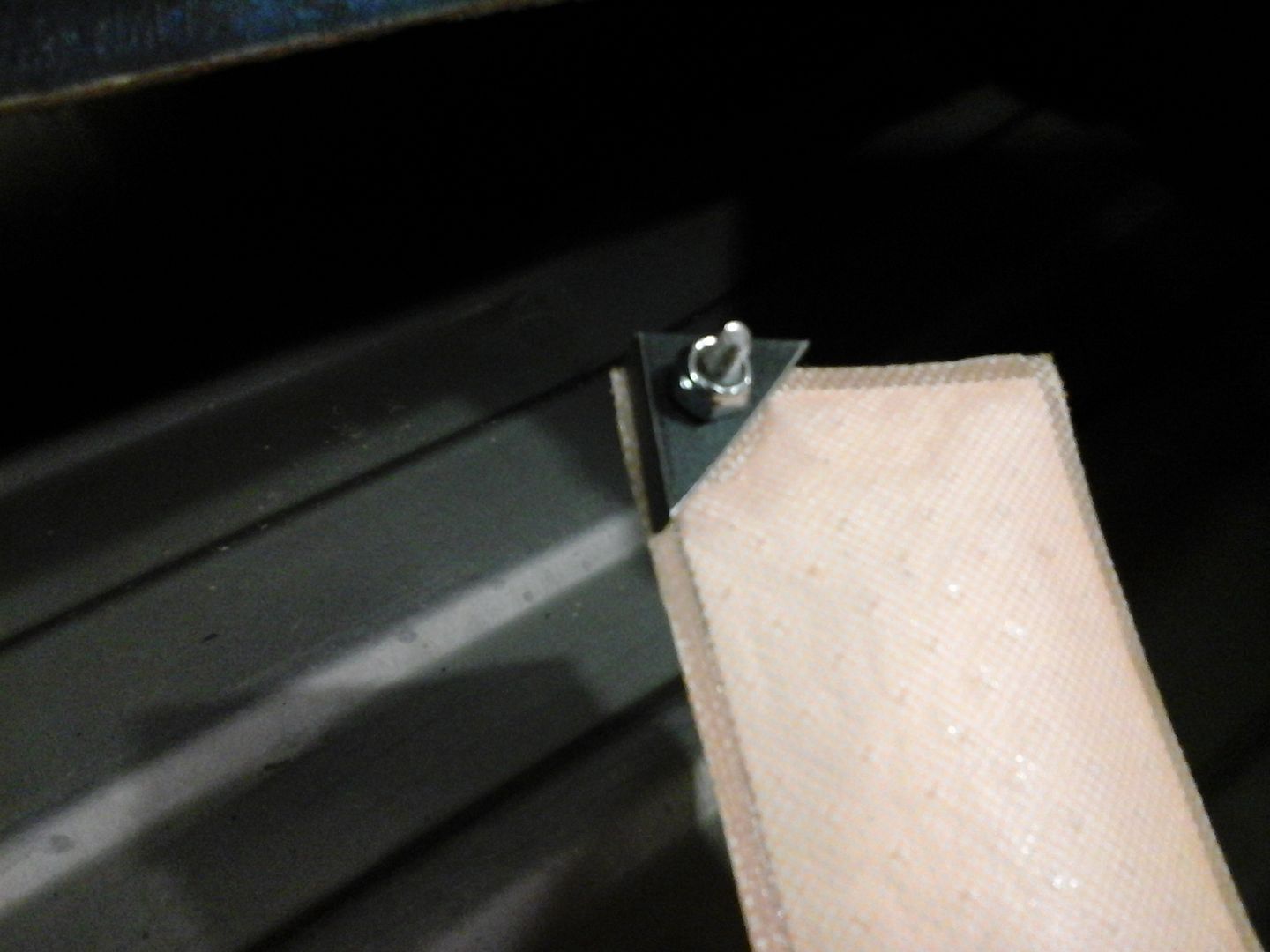 I have been thinking long and hard about a way to keep the Hydramat on the bottom of the tank. Well, I think I finally got it. I saw there was a flat triangular shape on the end of each leg with a small hole in it where they want you to mount their magnets. Well, I decided I may be able to cut some 1/4" flat stock steel in that shape and drill a hole and use a button head allen screw from the bottom with a nylon insert lock nut on top. That's what I did. The screws were 8-32 thread.