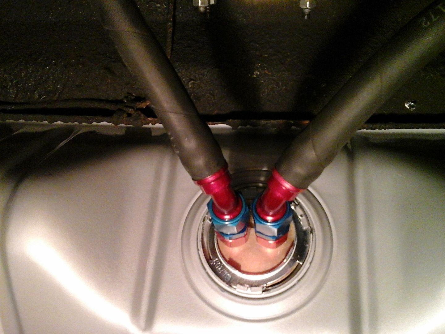 No leaks! :D The new pump is whisper quiet, no joke. I had exactly three gallons to dump back in and the fuel gauge read dead on. Plus! Fuel pressure stayed constant at about 6psi. Started it, warmed it up and took it around the block real quick, seems fine so far. I will get more fuel in it do a little fine tuning, and run it low on fuel when I feel comfortable to see how well the Hydramat really works.
