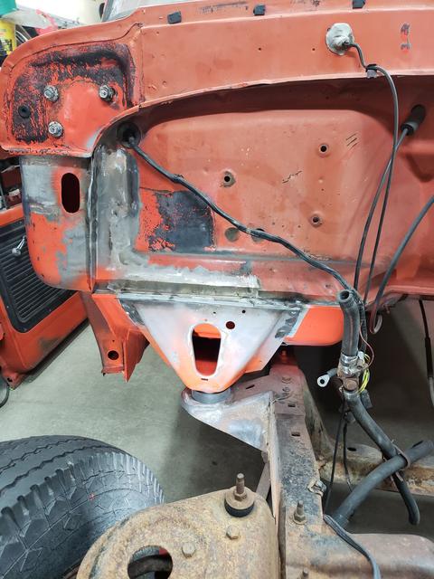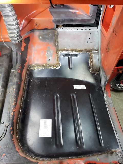 Thanks for the complements! It's turning out better than I had expected. A couple weeks ago I purchased a 36" metal brake and a sheet of 18 gauge steel. I made the last missing piece of the firewall with the brake. To my surprise it was easier, and turned out better than I had expected for my first attempt at making a patch panel from scratch. I finished fixing the cab mount frame bracket, and welding and grinding on the floor pan. The cab mount is installed and the cab is finally sitting the way it should! The next step is replacing the outer floor supports and making a couple corner floor pieces above the supports, then I'll call the cab done for now.