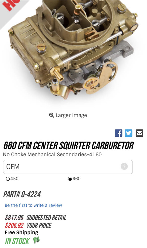 I saw a heads up on Facebook today, Holley has the 660 Center Squirters for sale cheap on the Holley website right now. I know a few people were concerned last time it looked like they discontinued them, then they came back, who knows this time. Anyway, excellent price.