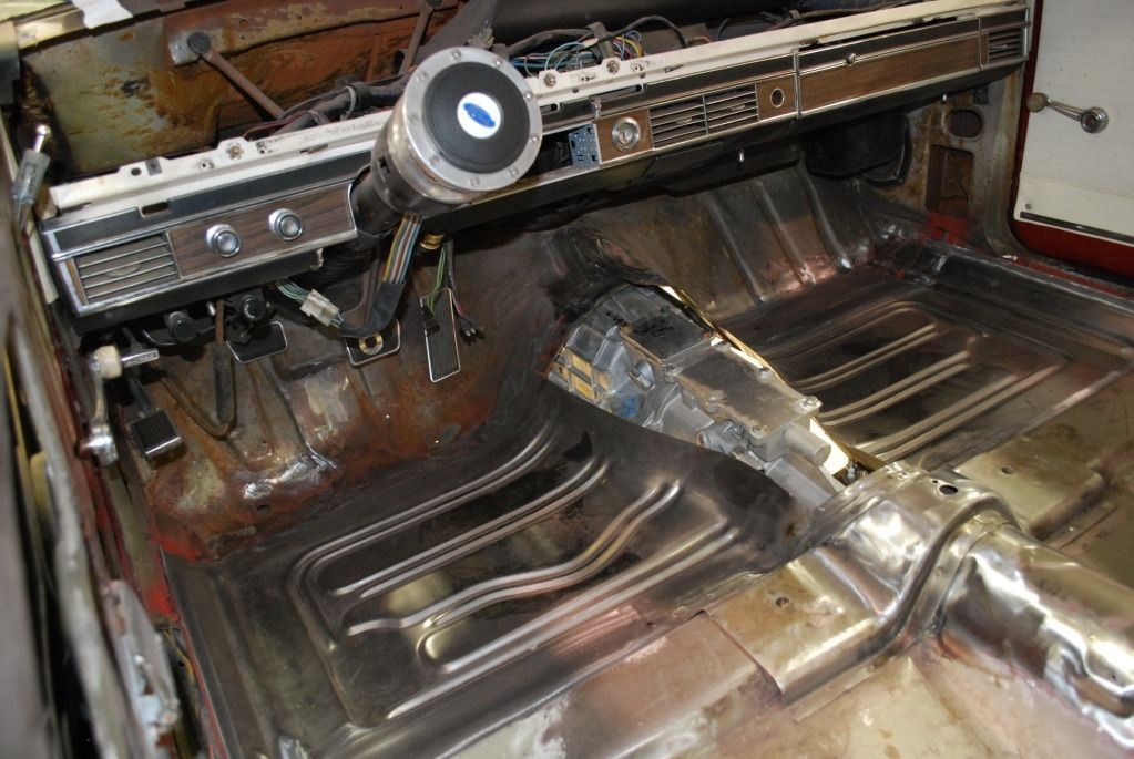 Hmmm. I wonder if the floors are a little different between 65s and 66s. I was able to get by with some well placed dents in the floor towards the front . I was afraid I was going to have to do just what you are doing, though. Keep up the good work! Once it's it's done it will have been worth it.  :)