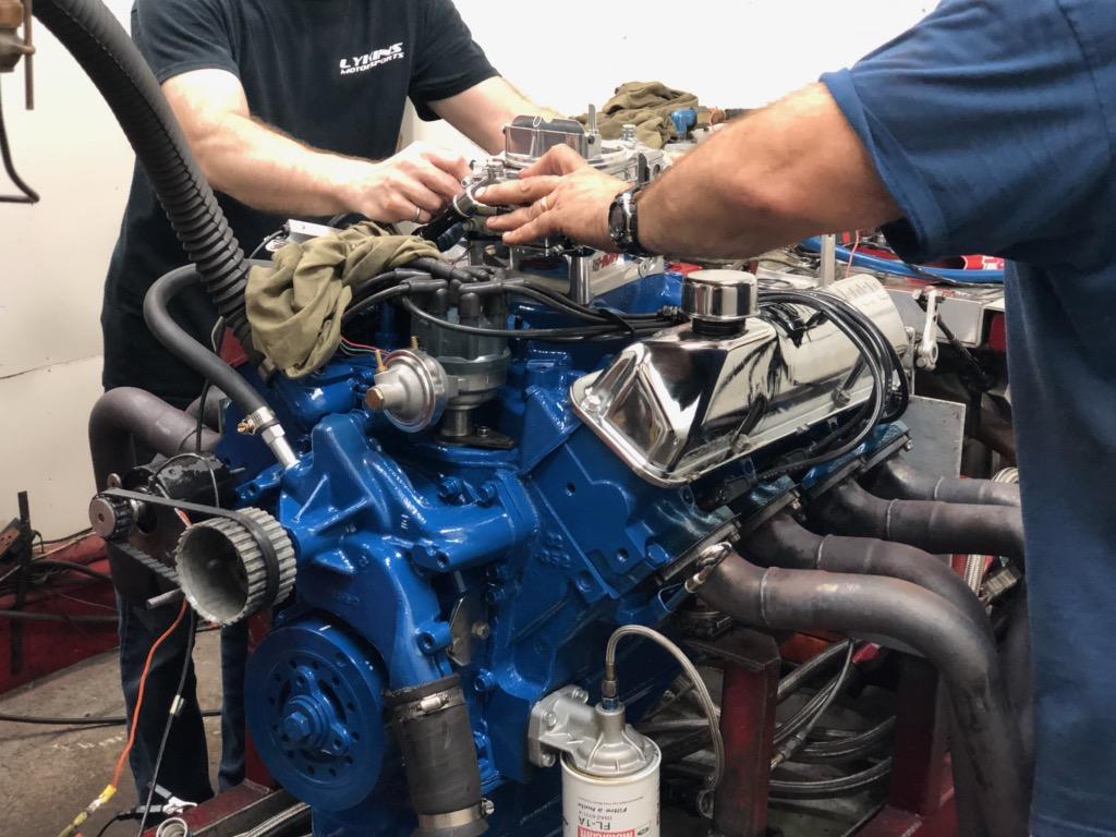 Here it is on the dyno, me on the right, Brent on the left, after giving up on the CJ carb LOL