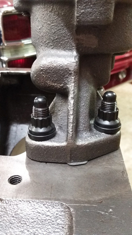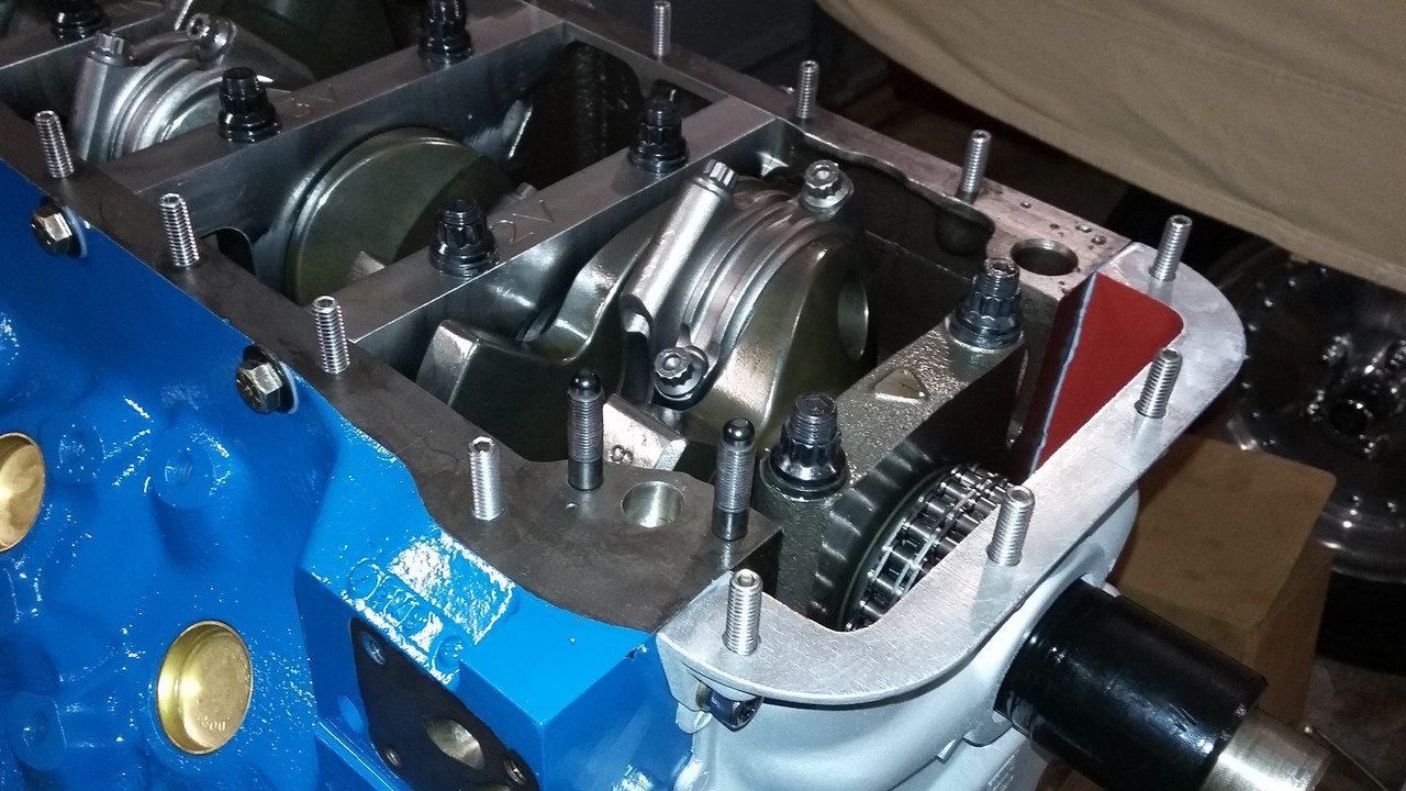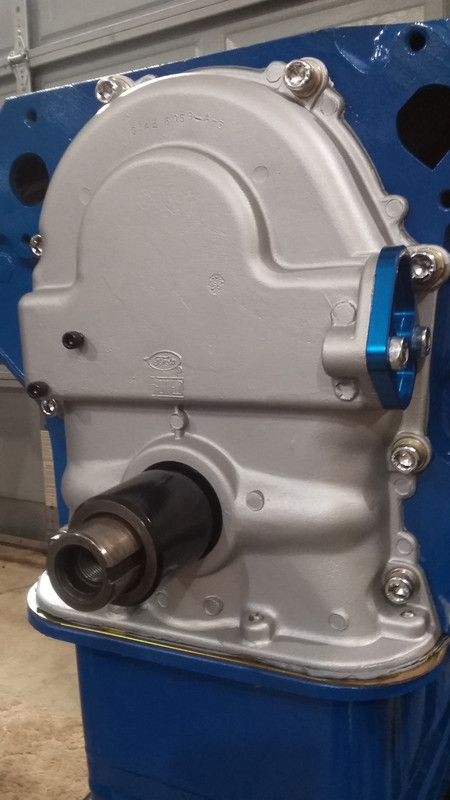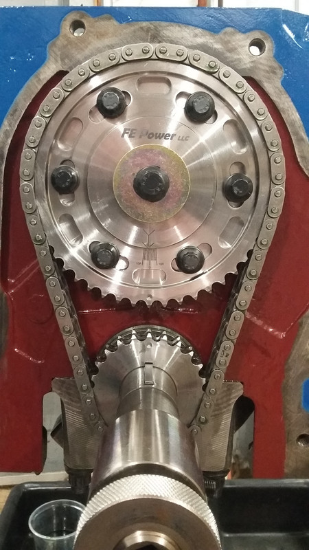 I had to grind slightly on the vertical casting rib on the back of the timing cover to clear the ARP bolts I installed in the cam gear. Small detail, I drilled and tapped the upper 4 timing cover bolts to 3/8" also. Never understood why they made them smaller.