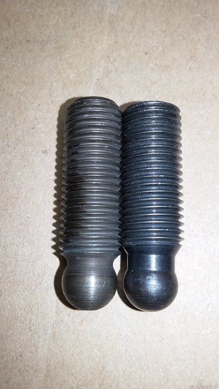 The adjuster screws are another nit pick of mine. I compared the ball end screw adjusters from Erson, Harland Sharp, and Crane. The Harland Sharps are the nicest, IMO. the ball has a nice radius and is the closest dimensionally to the 3/8" size. You can feel the difference moving them in the pushrods cup. Harland Sharp has a precision fit. Picture is HS left, Crane right: