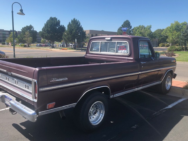 I was driving to a job site today and noticed an F-250 Ranger on the side of the road for sale. Stopped to take a look, the closer I got the better it looked. Super super original truck, original paint, body is straight as an arrow, maroon with black interior. I called the number on the for sale sign and asked the guy if he was OK with me popping the hood, I was really hoping to find an FE under the hood. I found a 429/460 sitting it in.