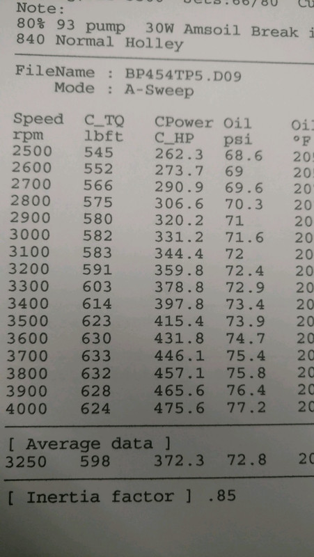Holy cow, that torque curve! The fact that it's so flat, and with such a conservative camshaft on a 110 separation, shows how little I know about camshafts. That's an impressive towing engine though! And the fact that it was done with 31* of timing shows how efficient the chambers must be. Should be able to live on about any fuel also. Very nice, Mr. Patrick.