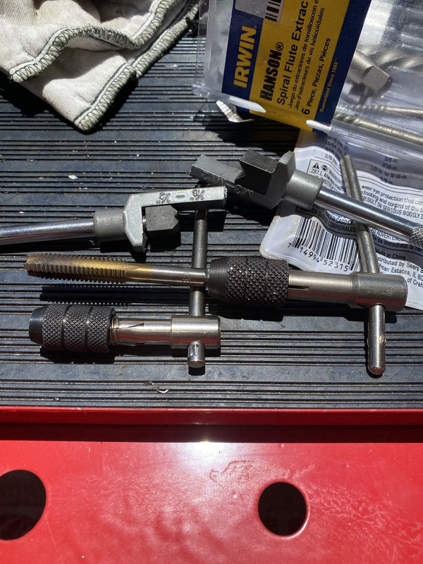 It always amazes me how those damn threads can weld themselves in there. None would spin out. Had to use rev bits/forward bits/picks/taps/hammer/extractors etc. to get them out. Broke three tap holders.