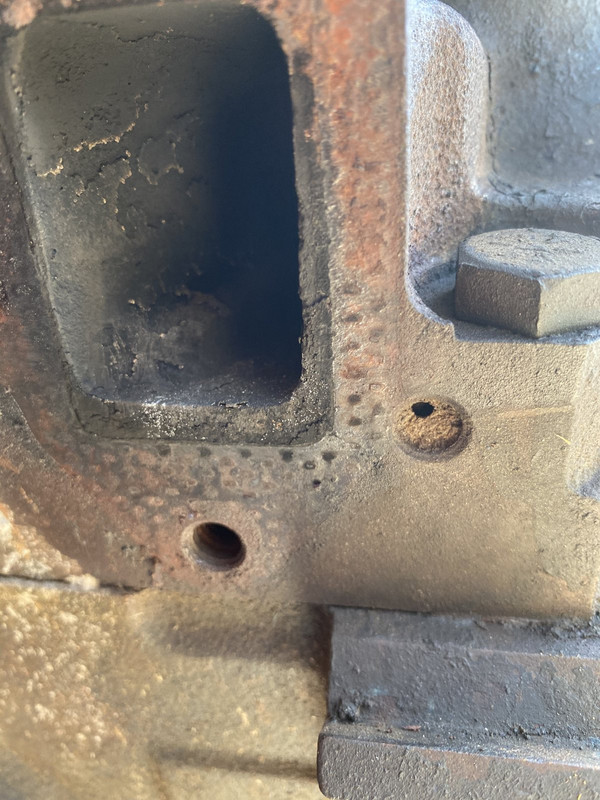 The forth hole that I thought was a previous owner try at drilling a bolt out turned out to be mud.