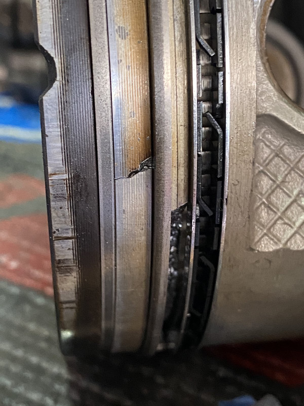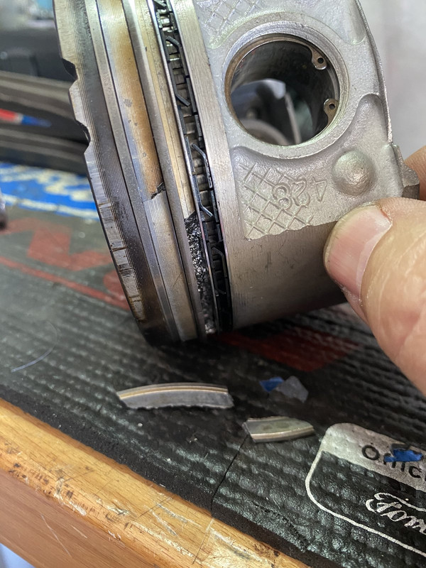 Factory cast pistons are not very durable when hit with detonation. ring lands break as you see and they also break off chunks of skirt as seen.