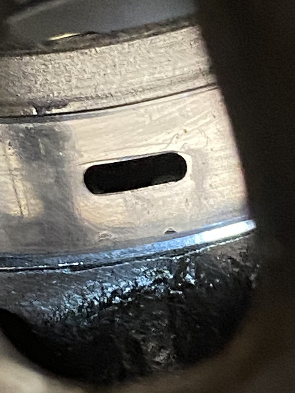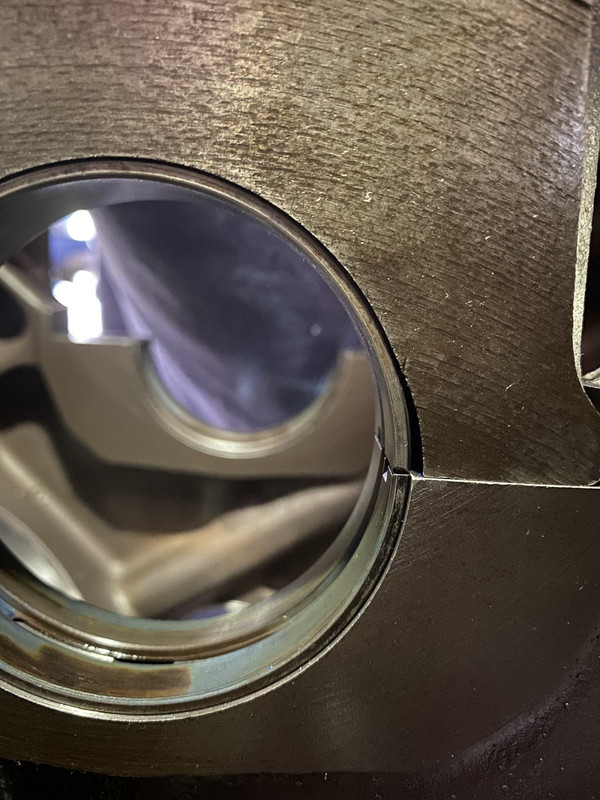 Spent the morning putting my hands on it by chasing all the bolt holes, cleaning leftover crud in the water jackets and just eyeing everything like cam bearings to make sure all is well. Only thing I found was in the rear cam bearing. When I first looked at it, it was from the bad angle (see pics), then I saw the good angle. Alignment looks ok to me, whatcha’ all think?