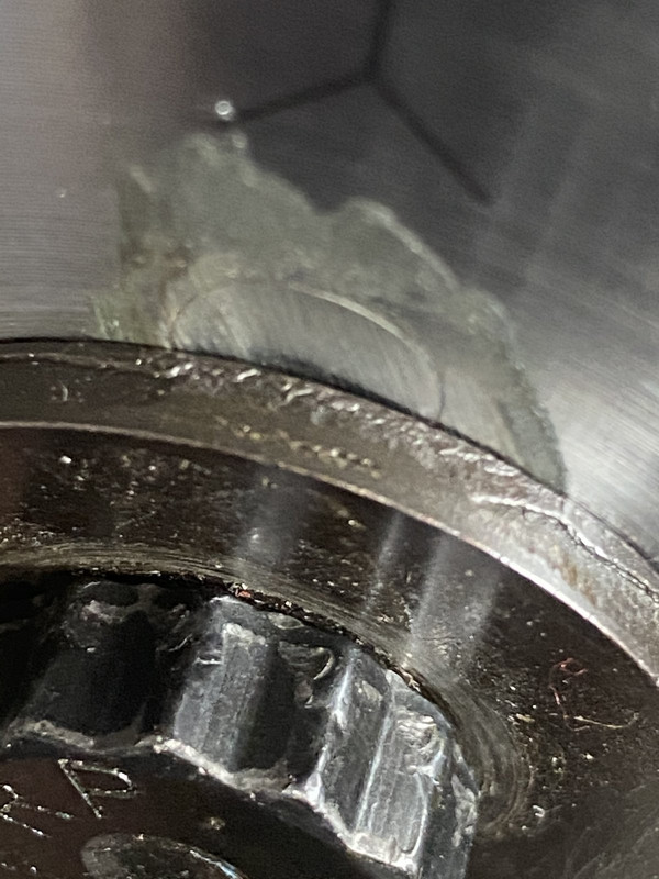 Here’s a wart. I attempted to take the timing gears off to get to the dowl pin to cut it off. But. As I was trying to pull the gears I decided I could not get the crank gear off without damaging the chain or bending the gear. So I reverted to my shade tree mechanic background and ground it down just below surface. It’s a very inelegant fix but it is a fix. And it hides mostly under the washer. Ok, lesson learned.